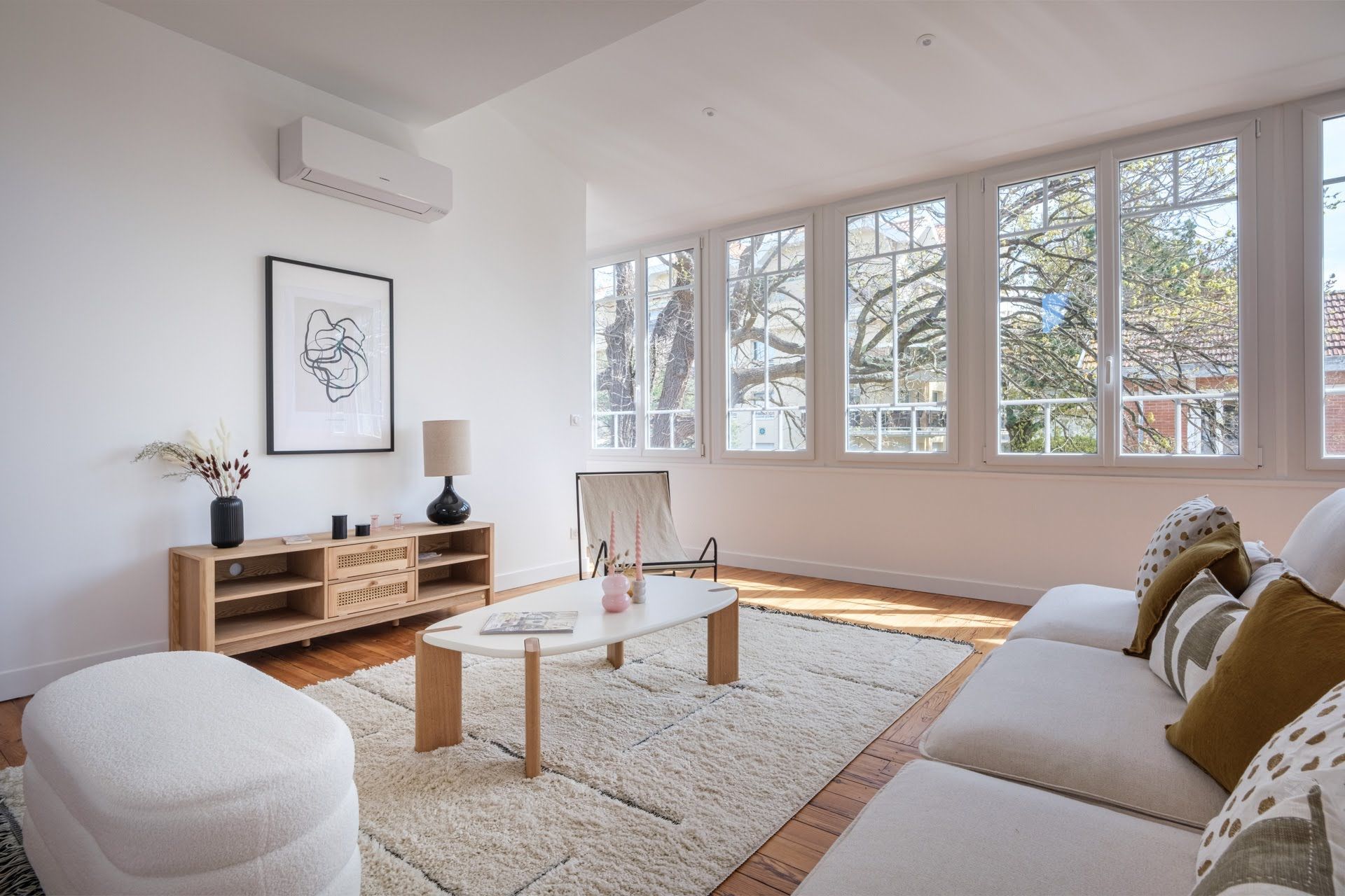Cette grande maison baignée de lumière, située en plein centre d'Arcachon, a été fraichement rénovée par nos clients. Pour la commercialisation ils nous ont confié la mission de réaliser un Home Staging pour meubler et aider la projection lors des visites sur une majeure partie des pièces de la maison.