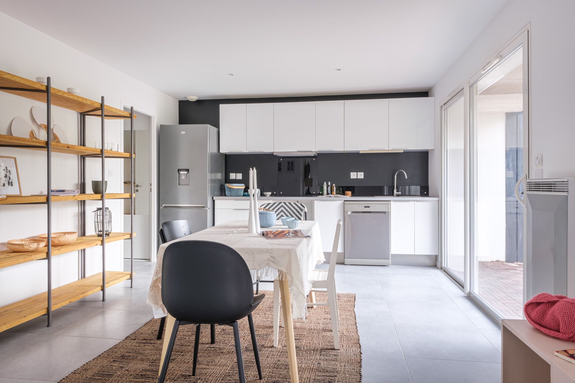 Notre client marchand de bien a rénové en 2023 cette maison de 90m2. Après un premier temps de commercialisation de la maison vide de mobilier, les visiteurs n'arrivaient pas à se projeter de façon évidente dans la grande pièce de vie : ou mettre le coin salon, comment positionner le canapé ?