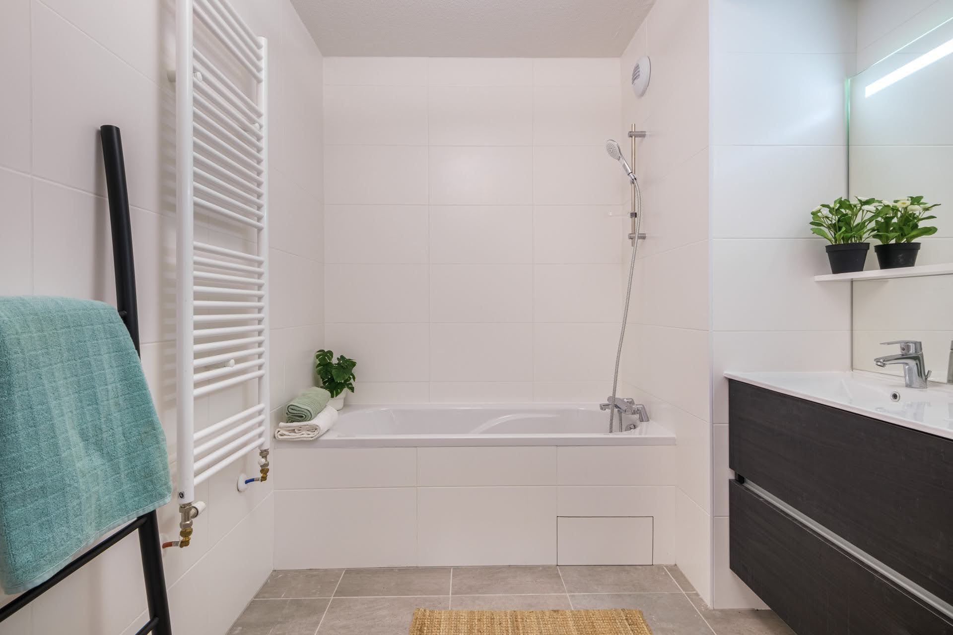 Nous avons apporté une solution de cuisine factice et un ameublement complet des pièces de l'appartement, ainsi que de la terrasse, communiquant avec la chambre parentale.